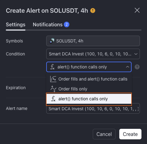 • Engedélyezve: A stratégia értesítést küld minden pozíciónyitáskor.